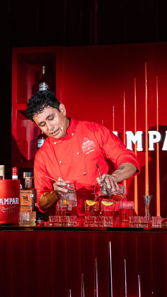 La noche, vibrante de inicio a fin, fue conducida por Israel Lara, quien imprimió energía y entusiasmo a una jornada que celebró lo mejor de la mixología nacional. En esta edición, el jurado estuvo compuesto por figuras clave de la industria: Murilo Marques, líder de Campari Academy Brasil; Christian Sifuentes, ganador de la competencia en 2024; y Peter Sánchez, Head Bartender de Tlecan, quienes evaluaron cada cóctel por su originalidad, complejidad y conexión con las raíces culturales.