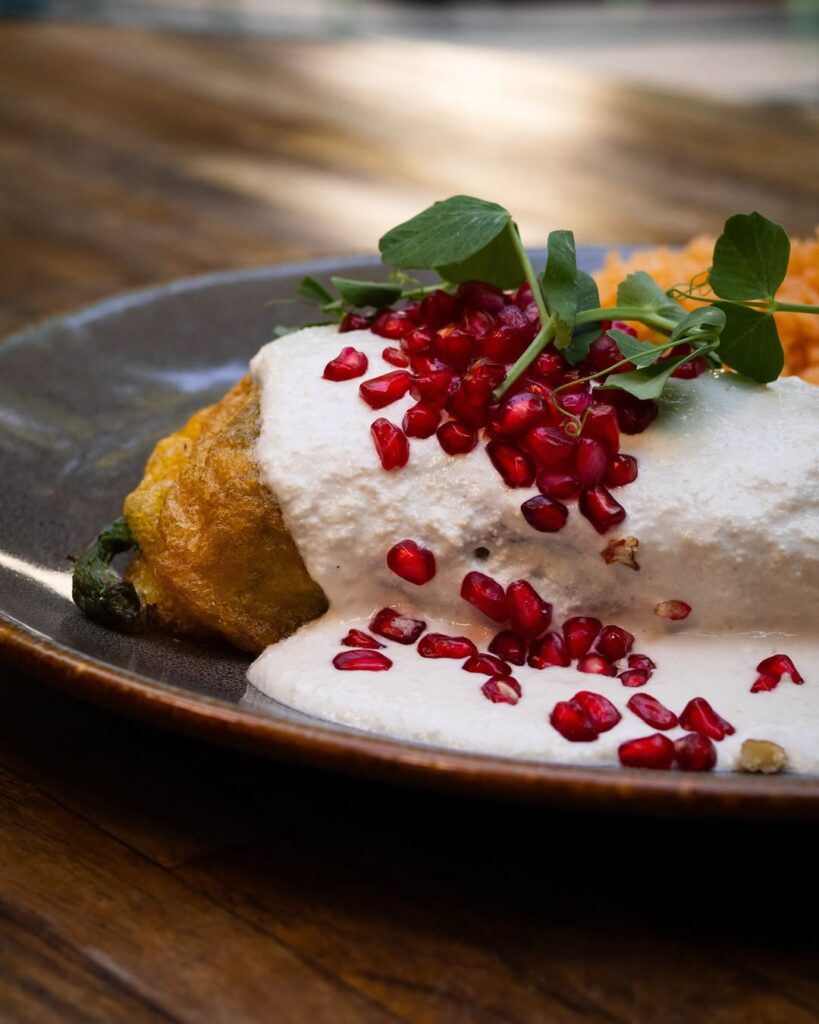 Este platillo barroco, originario de Puebla, celebra los ingredientes de temporada: chile poblano, nuez de Castilla, granada fresca y carne sazonada con frutas y especias. Pero más allá de su historia, cada chef imprime su estilo en reinterpretaciones contemporáneas y presentaciones minimalistas. Aquí te presentamos tres lugares en los que ya puedes disfrutar de un chile en nogada en CDMX.