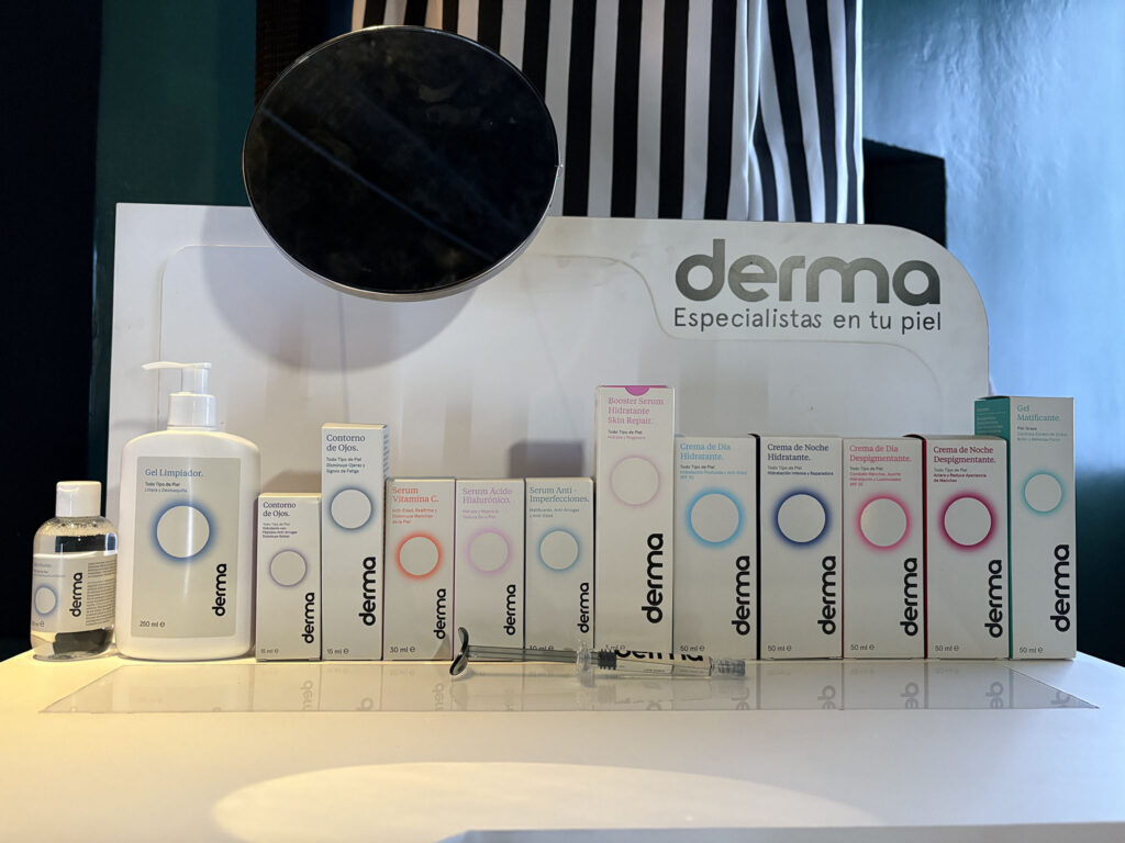 Booster serum con silicio y ácido hialurónico ofrece un efecto de relleno inmediato en líneas de expresión y puede usarse como tratamiento intensivo nocturno. En lo que se refiere a las cremas para día y noche, derma cuenta con cuatro presentaciones hidratantes y despigmentantes.