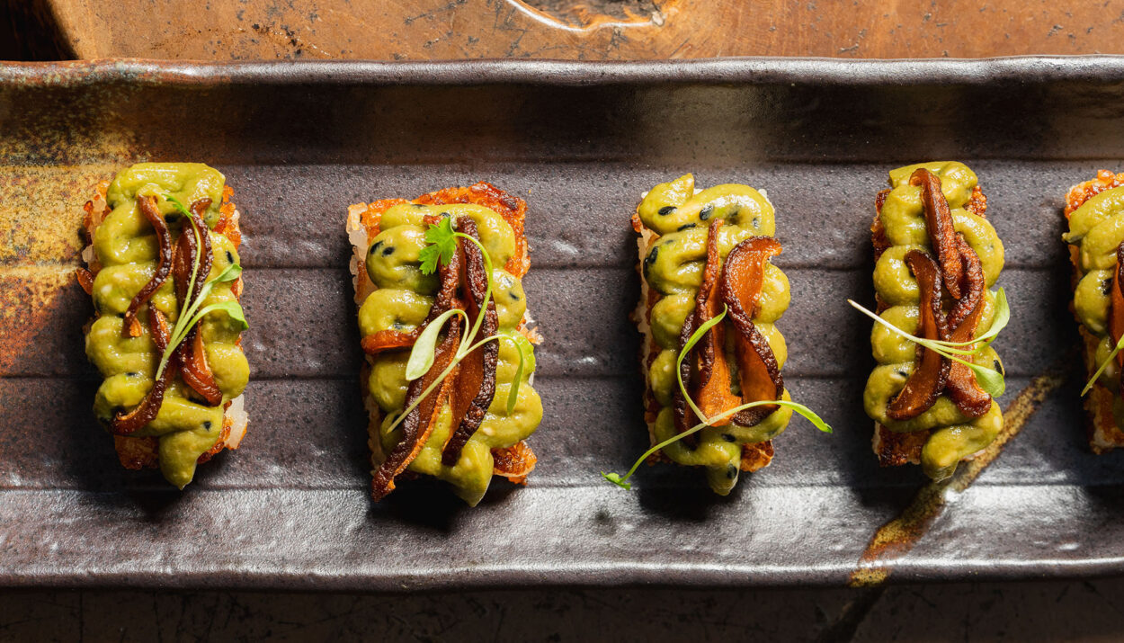 Comer aquí no es solo un plan: es un statement. Como el Avocado Crispy Rice —arroz crujiente con aguacate, kalamansi y shiitake— fresco, cítrico, con un crunch que enamora desde el primer bocado; o la Wagyu Picanha, con salsa verde estilo Singapur y toque de cacahuate: jugoso, moderno y adictivo.