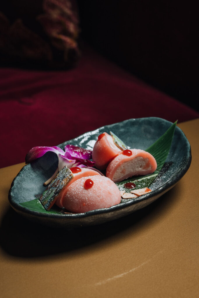 En el nivel más alto del hotel, Tea Room ofrece otro tipo de experiencia. Lejos del bullicio, en un espacio íntimo que mira a la ciudad desde el piso 40, se sirve un Night Brunch de cinco tiempos con inspiración asiática.