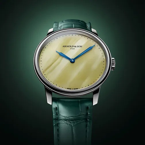 El HM Steel Amber de Arnold & Son es una oda a la naturaleza y al paso del tiempo. Su carátula, elaborada con ámbar báltico, encierra la eternidad en una esfera de cálidos reflejos, mientras que su caja de acero de 39.5 mm y perfil ultradelgado de 7.82 mm guarda en su interior el calibre manual A&S1001, con una impresionante reserva de 90 horas. Limitado a tan solo 38 ejemplares, este reloj de colección combina tradición artesanal y elegancia contemporánea, acompañado de una correa de cocodrilo en verde imperial.