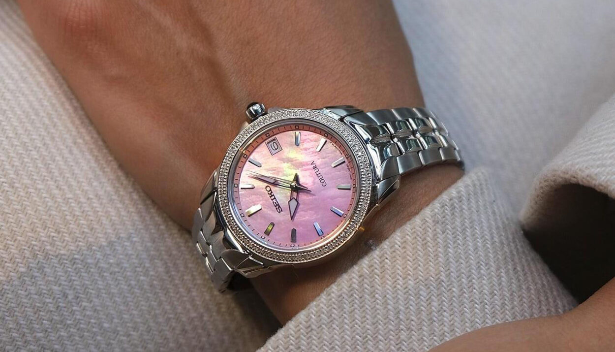 Por su parte, Seiko lanza el SUR589, una pieza que rinde homenaje a la fuerza y elegancia del rosa, color que simboliza la esperanza y la resiliencia. Su esfera de madreperla rosa y bisel engastado con 72 diamantes reflejan una feminidad sofisticada, sin excesos.