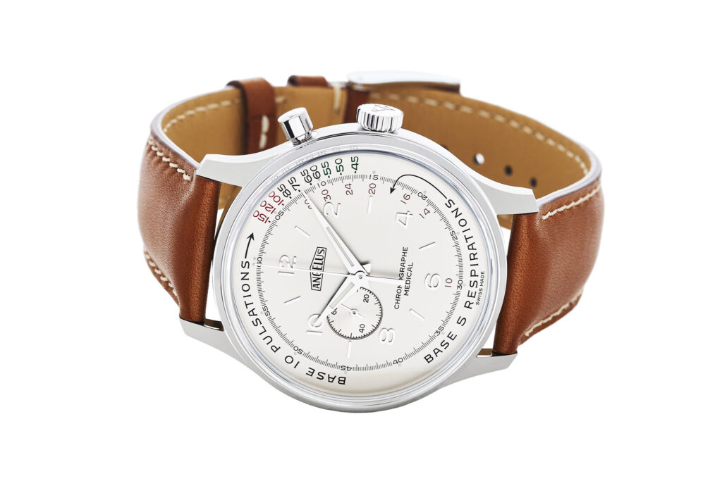 El Chronographe Médical no es un cronógrafo convencional: su medición está limitada a 60 segundos, suficiente para calcular las constantes vitales del paciente. Su diseño, más funcional que ornamental, responde a la lógica de los relojes profesionales de mediados del siglo XX. Se complementa con una correa de piel Novonappa en tono marrón dorado, cosida a mano y capaz de desarrollar una pátina única con el tiempo.