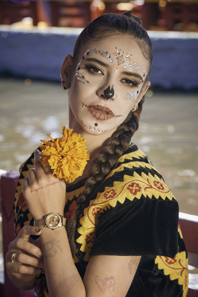 Cada pieza de esta colección encarna los elementos más representativos del Día de Muertos: el esplendor de las calaveras, la energía de los tonos vibrantes y la belleza de lo que permanece más allá del tiempo.