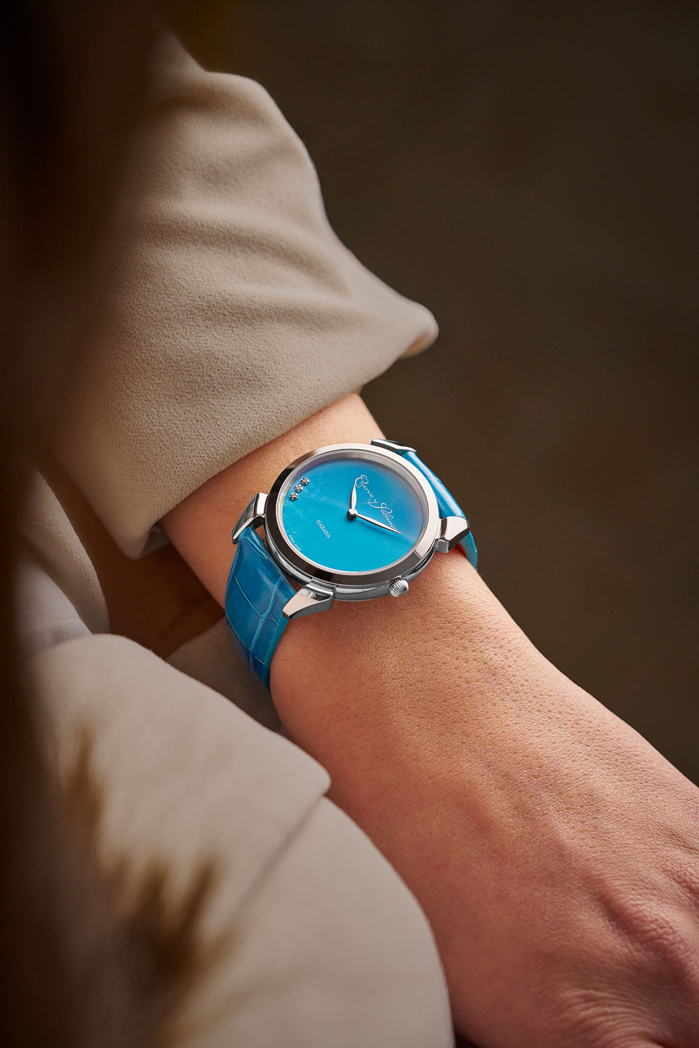 Cuervo y Sobrinos abre un nuevo y luminoso capítulo en su universo femenino con la ampliación de Historiador Primera Dama, una de las colecciones más emblemáticas de la Maison. Inspirada en el glamour, la sensualidad y la vitalidad de La Habana de los años 30, esta línea de relojes para mujer suma cuatro nuevas creaciones, cada una protagonizada por una sofisticada esfera de piedra natural, trabajada con un nivel de calidad y refinamiento excepcionales.