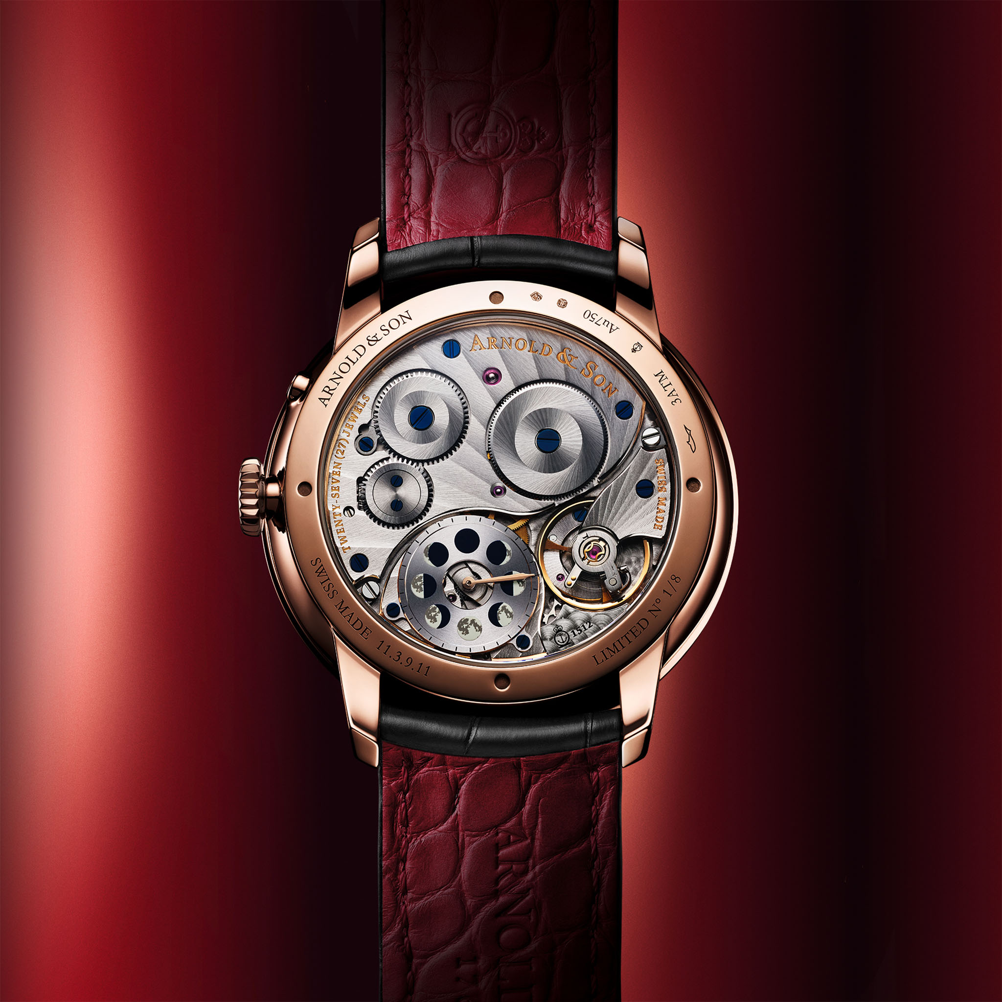 Mientras una lunación real dura 29 días, 12 horas, 44 minutos y 2,8 segundos, Arnold & Son ha alcanzado un nivel de precisión tal que solo se produciría un día de desfase tras 122 años, siempre que el reloj reciba cuerda de manera constante.