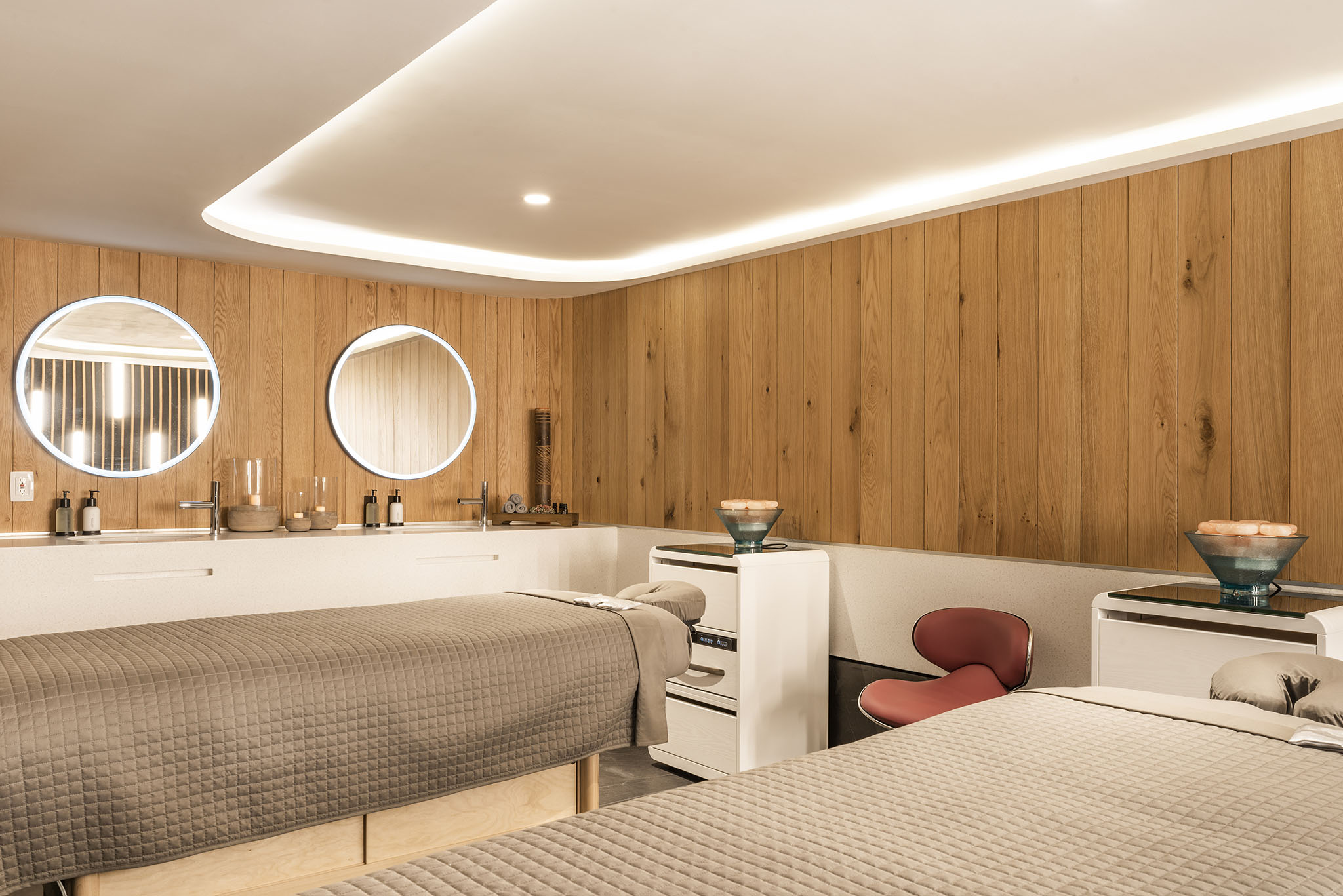 El spa cuenta con cuatro cabinas de tratamiento, áreas de relajación y espacios dedicados al cuidado personal y la belleza, creando una atmósfera armoniosa que refleja la esencia sofisticada y creativa de Andaz Condesa.
