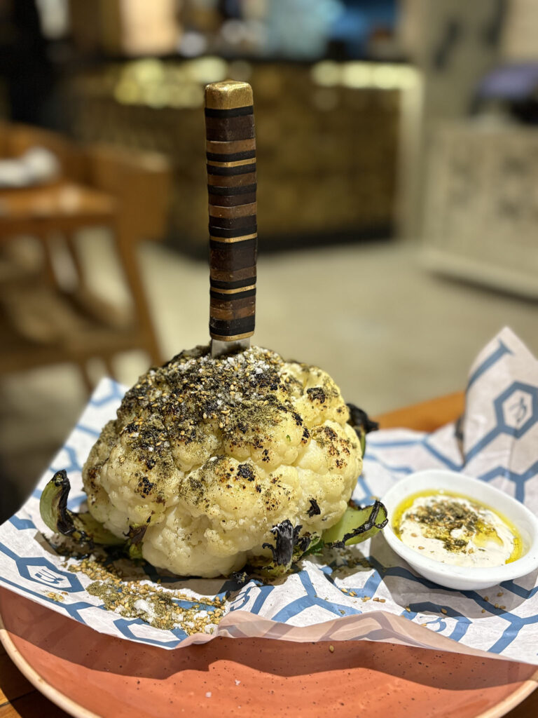 Vale la pena regresar para probar el kebab de carne Wagyu de Durango, el pollo entero a las brasas o la coliflor rostizada, platillos que son verdaderos agasajos desde que llegan a la mesa. Y, por supuesto, no puedes irte de Merkavá sin un café turco, intenso y ceremonial.